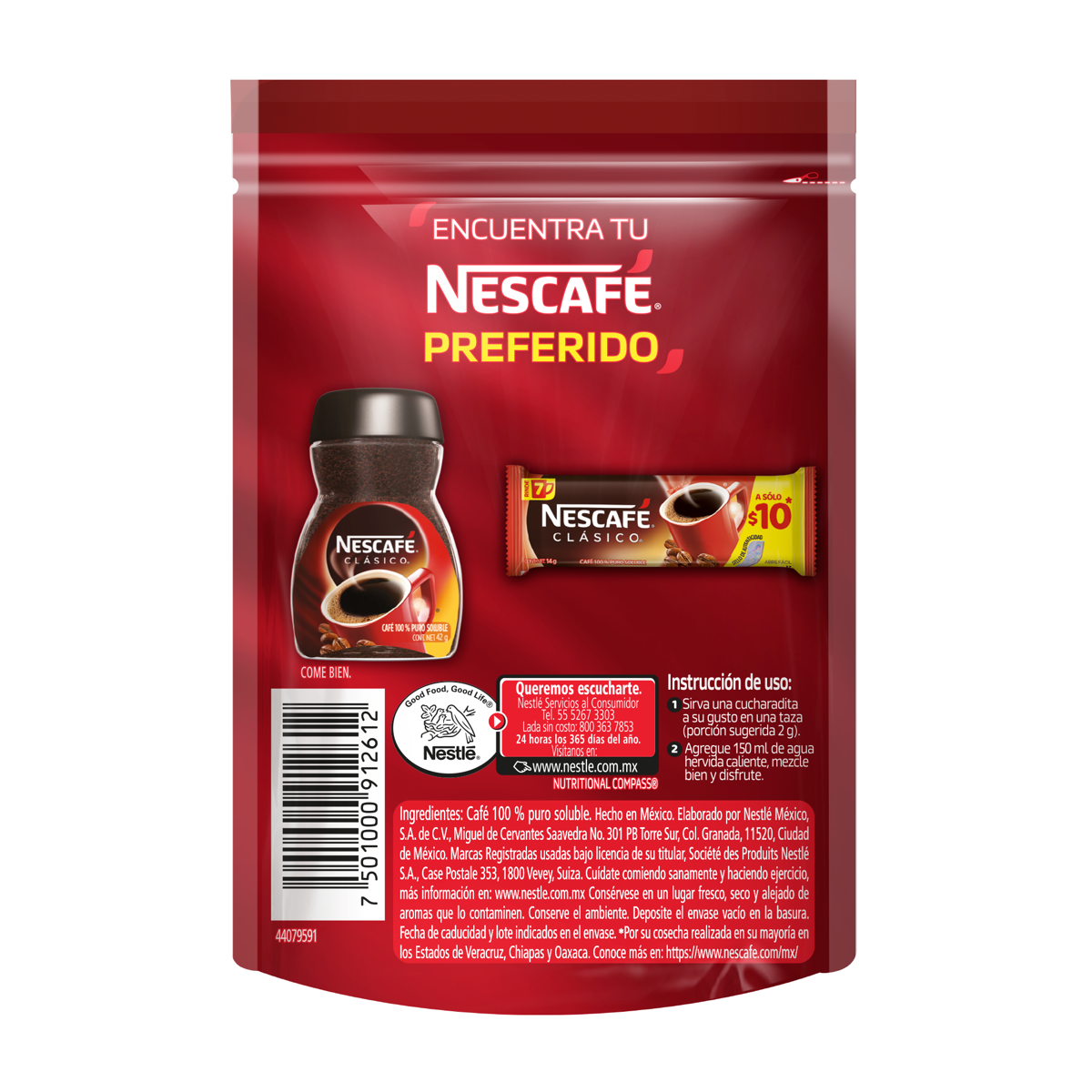 Empieza tu día de la mejor manera con el delicioso sabor de Nescafé Clásico. Un café con sabor y aroma incomparables que te ayudan a despertar de la mejor manera. Se trata de un café 100% puro soluble, el preferido por los mexicanos, elaborado a base de una mezcla de granos de café arábica y robusta para siempre ofrecerte la mejor taza, con el rico sabor y aroma que ya conoces.