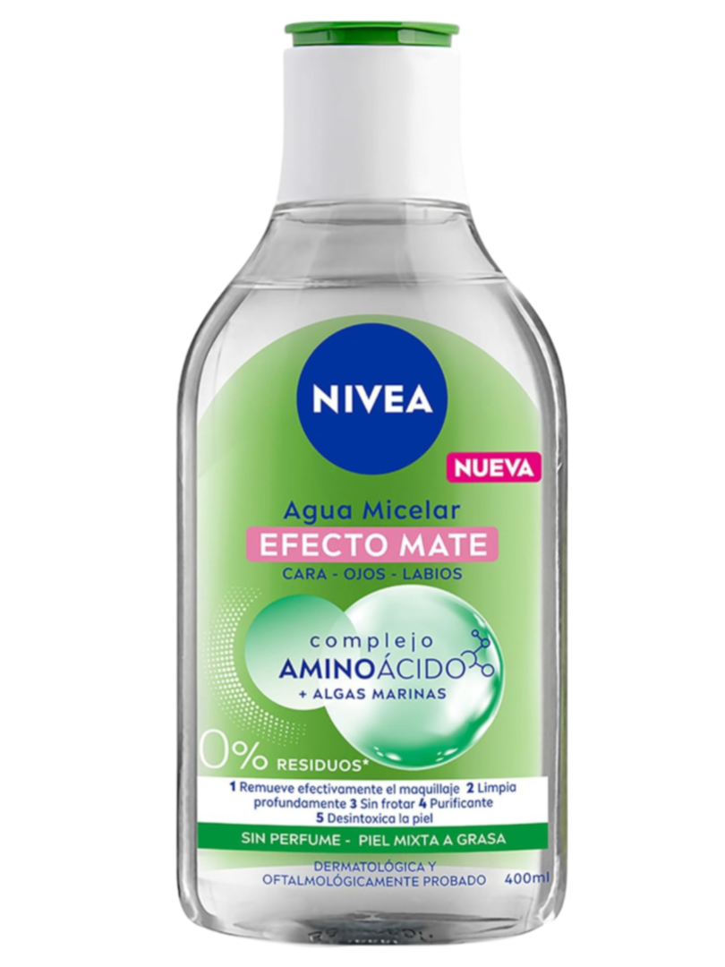 NIVEA AGUA MIC.6/400 ML EFECTO MATE