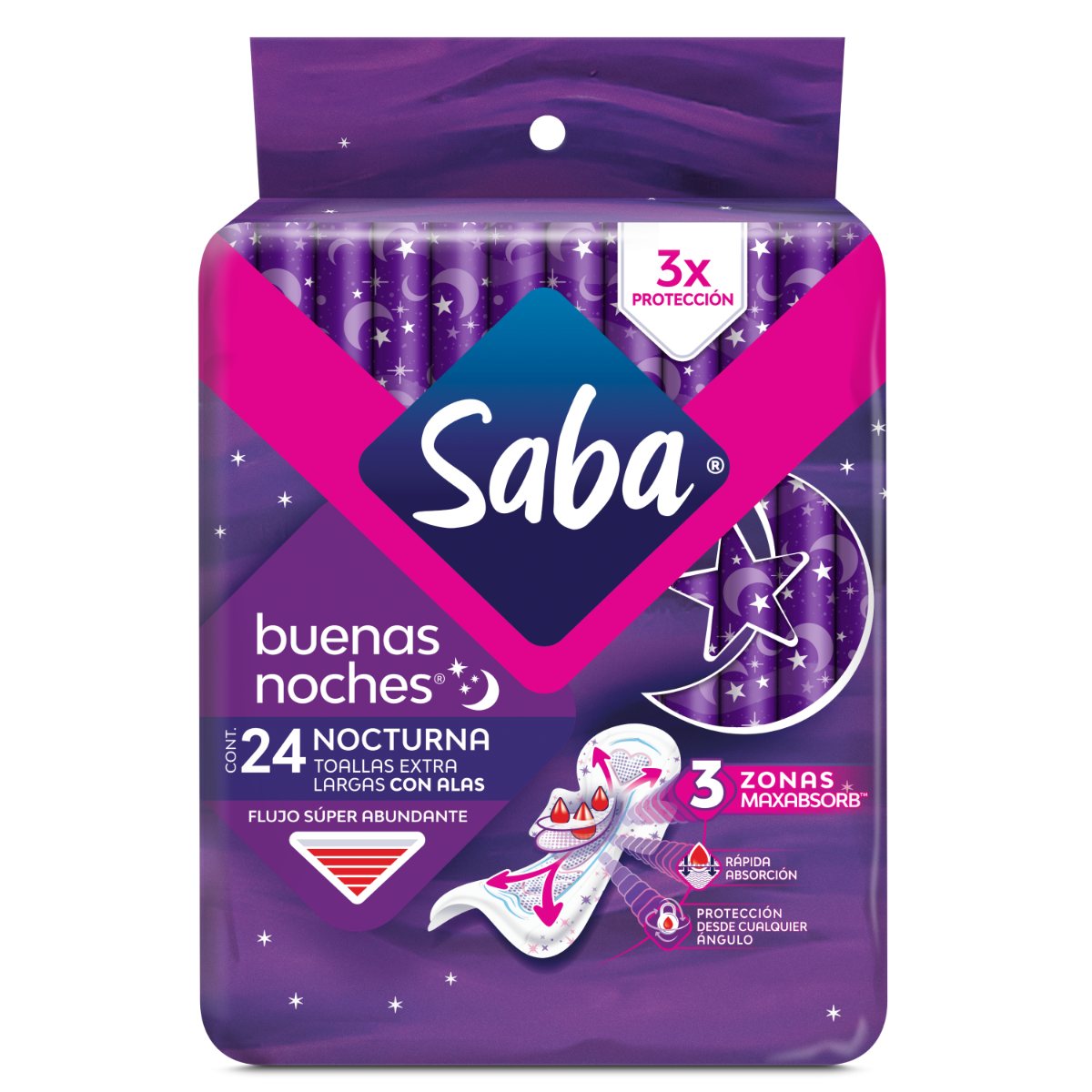 Saba Buenas noches ahora con tecnología AbsorbPlus cuenta con canales profundos donde más lo necesitas para darte máxima protección sin importar la posición en la que duermas. Saba Buenas Noches te acompaña en esas noches para que duermas verdaderamente cómoda y tengas mañanas perfectas.