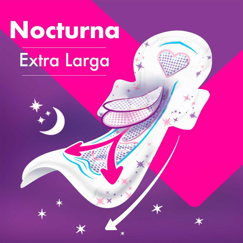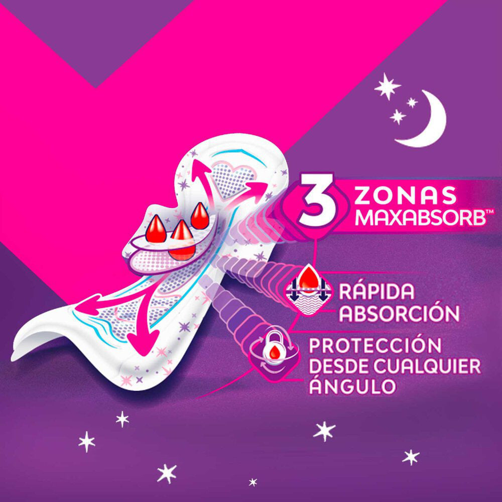 Saba Buenas noches ahora con tecnología AbsorbPlus cuenta con canales profundos donde más lo necesitas para darte máxima protección sin importar la posición en la que duermas. Saba Buenas Noches te acompaña en esas noches para que duermas verdaderamente cómoda y tengas mañanas perfectas.
