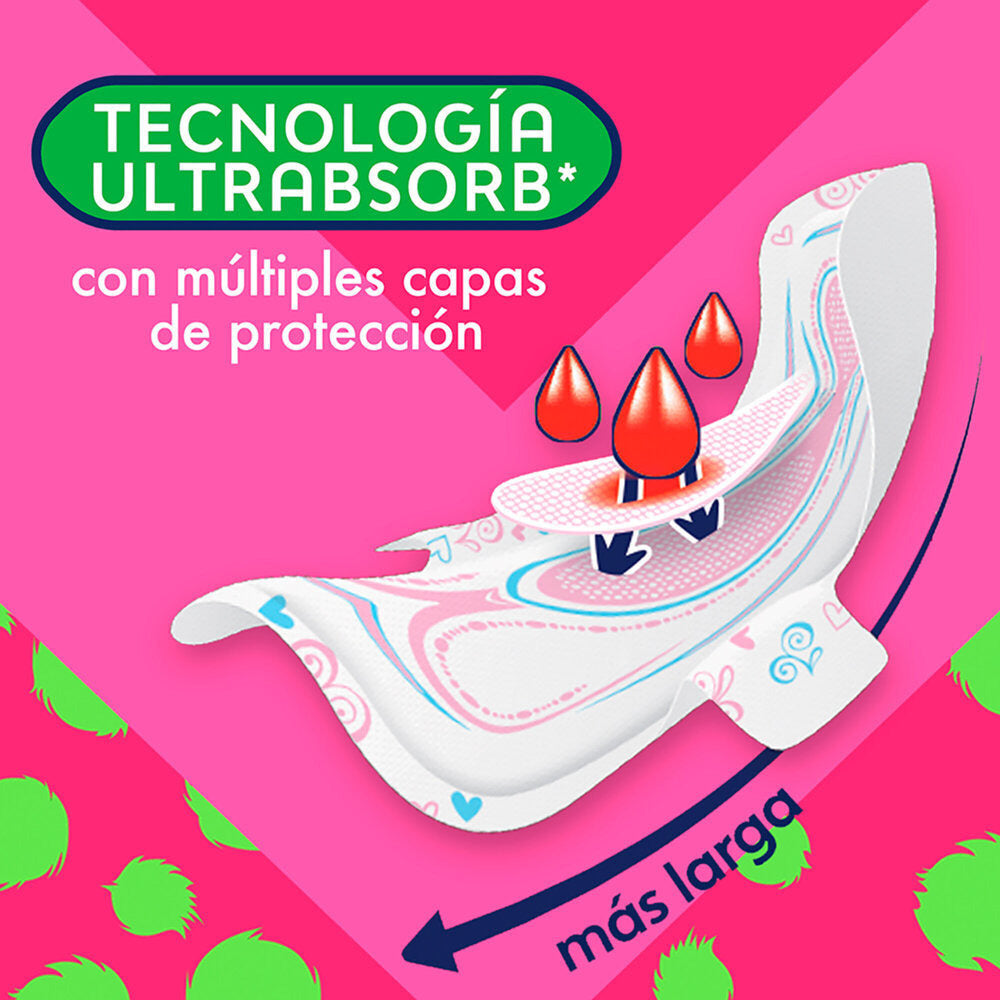 Toallas Femeninas Saba Teens Ultradelgada Larga con Alas 10 piezas